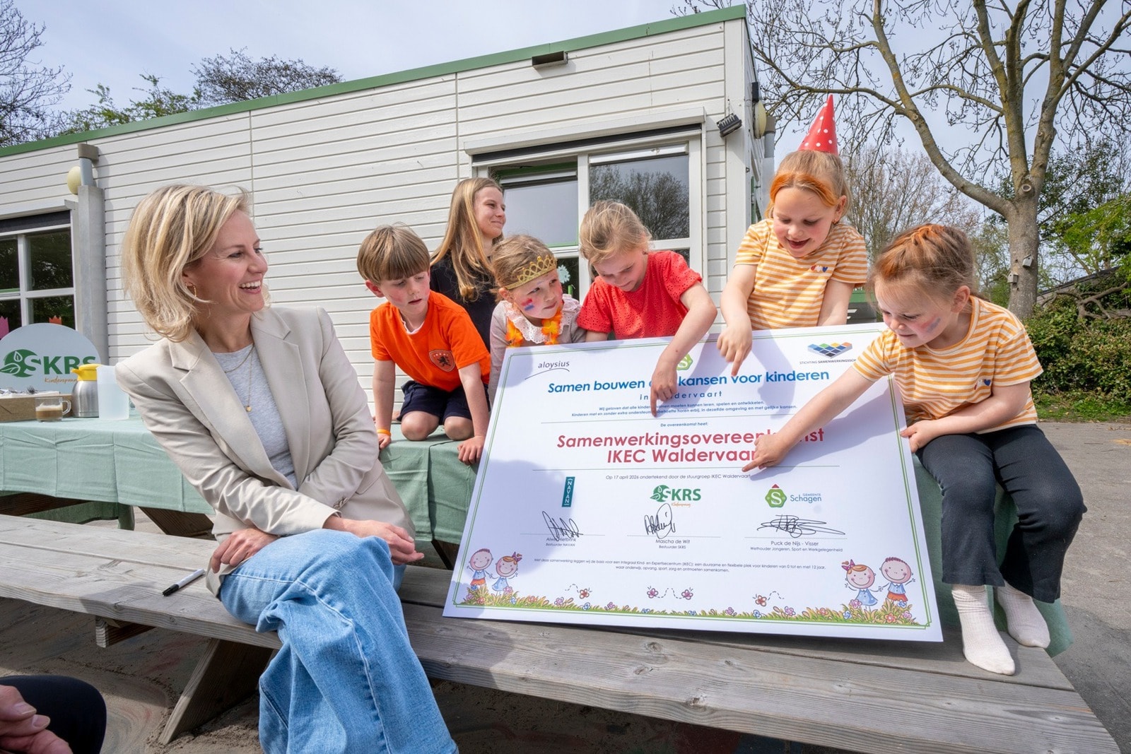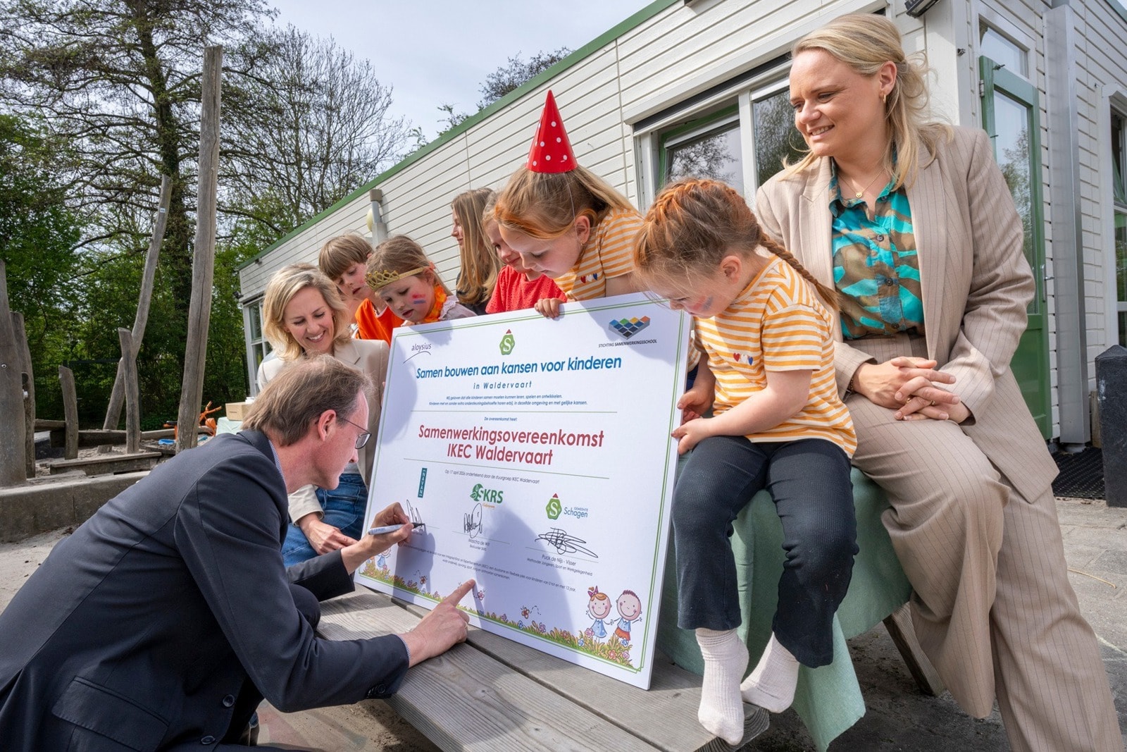 Op het speelplein van bso Waldervaart hebben we vanmiddag gezamenlijk, en onder toeziend oog van de kinderen, de samenwerkingsovereenkomst officieel ondertekend. In het IKEC komen onderwijs, opvang, zorg, sport en de wijk samen in één gebouw. Een plek waar kinderen zich optimaal kunnen ontwikkelen én waar ontmoeten in de buurt centraal staat.